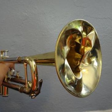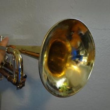 This trumpet was dropped right on its bell! Ouch! We can reshape it back to the original bell shape.